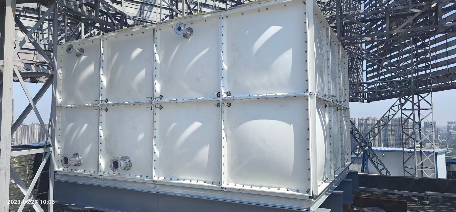 SMC玻璃鋼水箱是一種應(yīng)用于各類工業(yè)、民用建筑給水、暖通等的水箱,特點是表面光滑、無裂紋、焊縫無氣泡。SMC玻璃鋼水箱是指用玻璃鋼做為原材料加工而成的水箱。